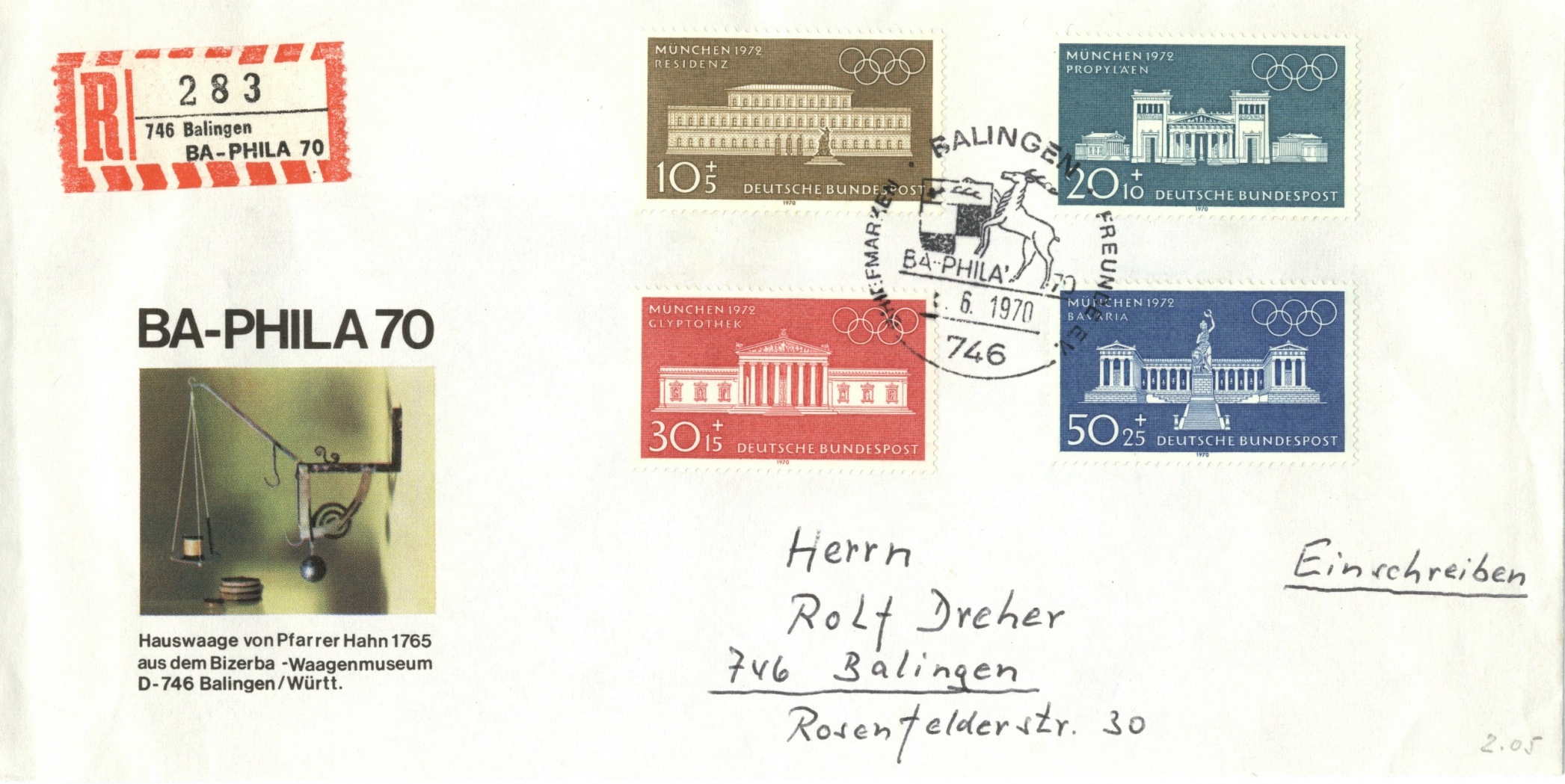 Sonderpostamt, Sonderstempel und besonderen Einschreibzettel mit dem Veranstaltungseindruck.